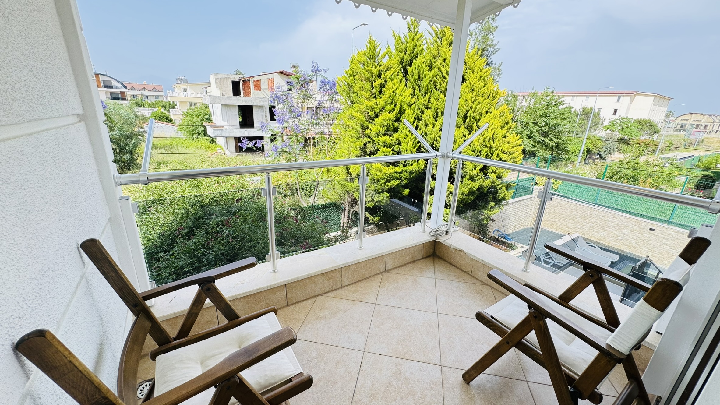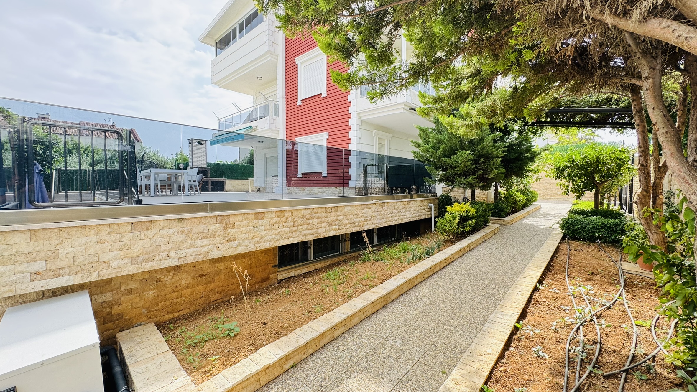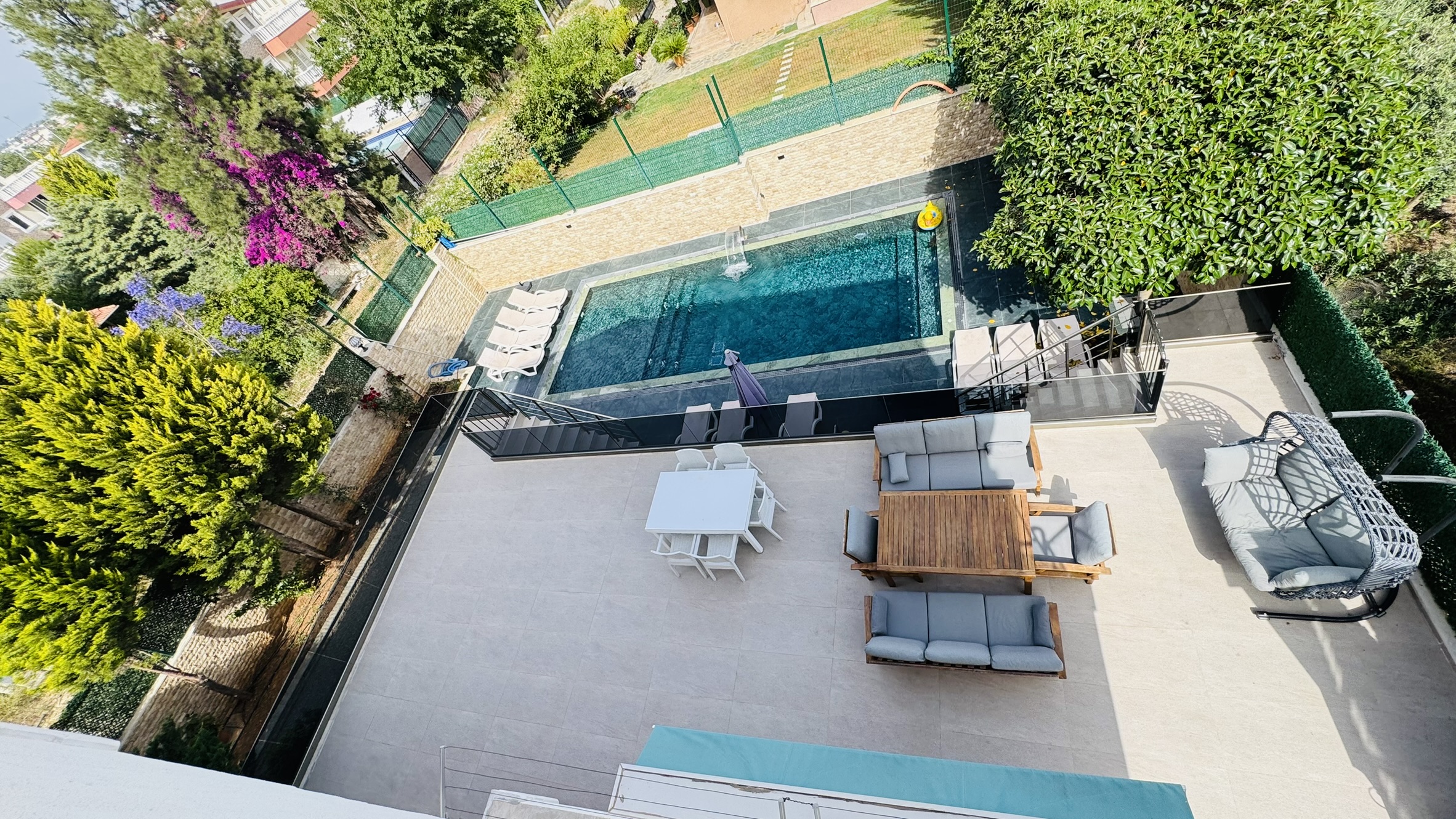 Muhafazakâr villa kiralama seçenekleri arasında öne çıkan bu özel villa, havuz, bahçe ve yaşam alanlarında dışarıdan görünmeyecek şekilde düzenlenmiştir. Böylece İslami hassasiyetlere uygun bir tatil arayan misafirler gönül rahatlığıyla konaklayabilir. Bahçe içerisinde yer alan oturma grupları, barbekü alanı ve güneşlenme terası ile tüm gününüzü huzur içinde geçirebilirsiniz.