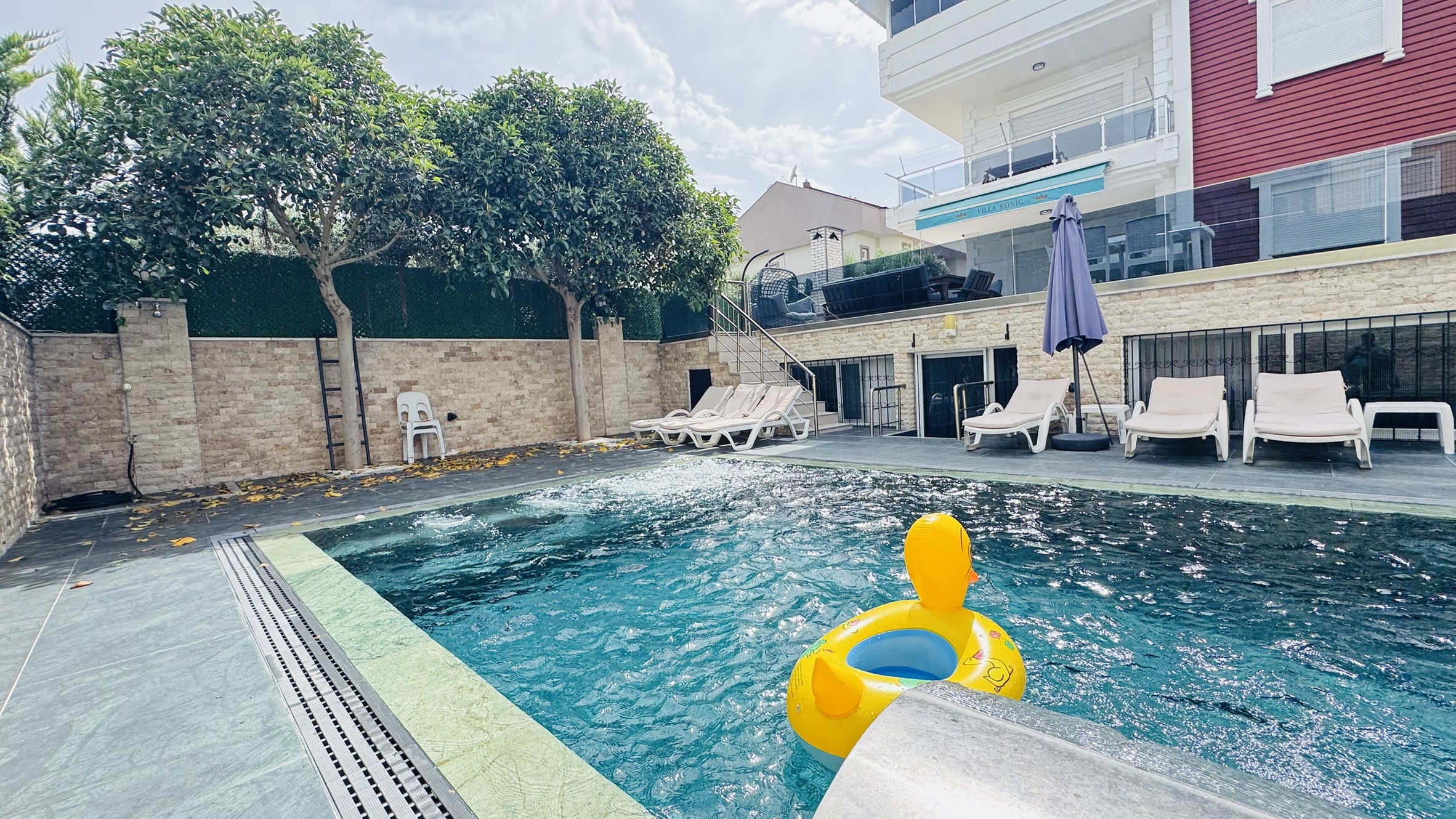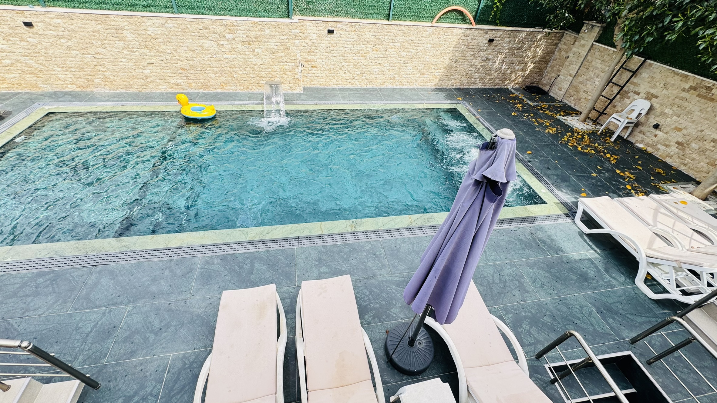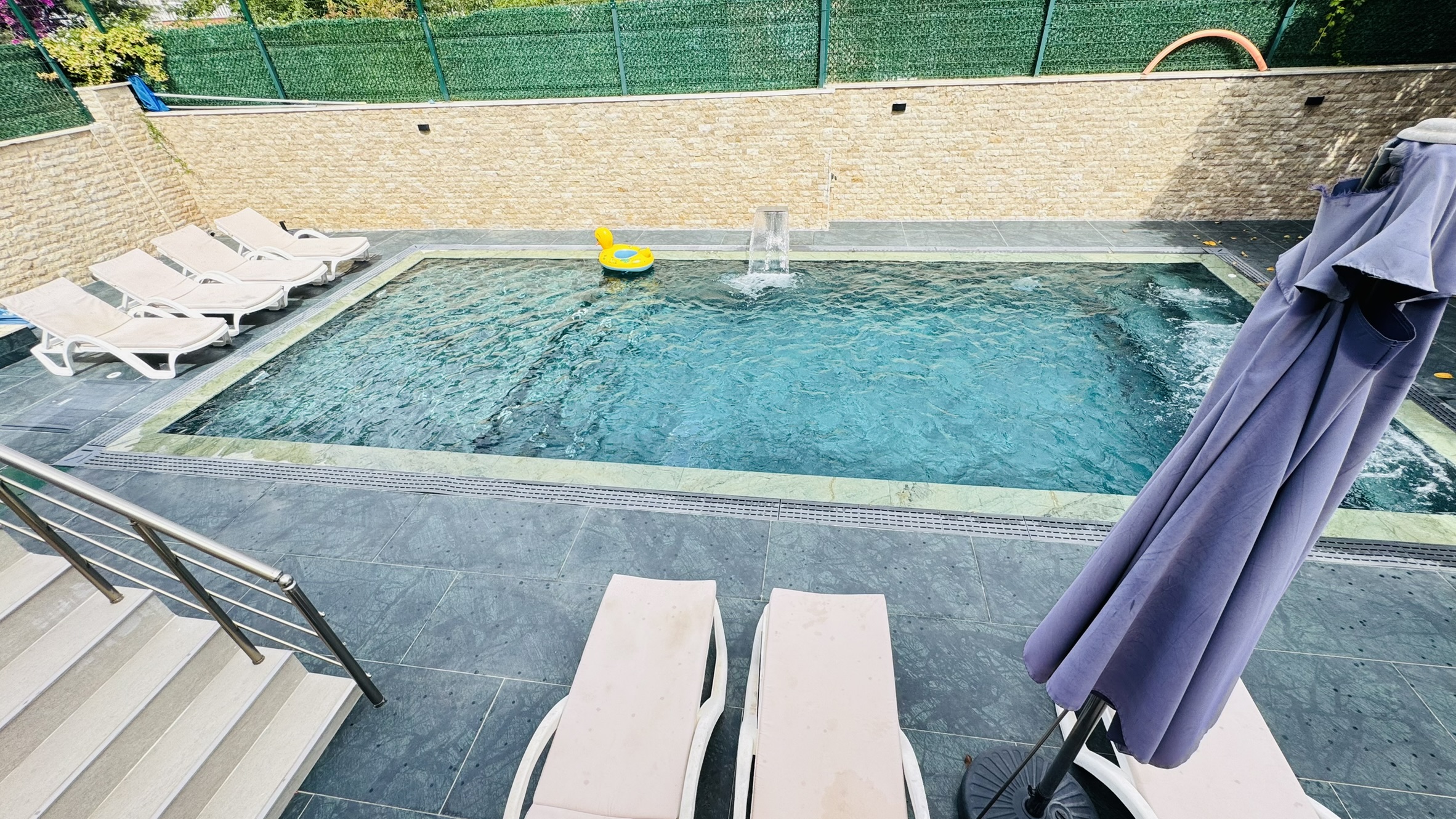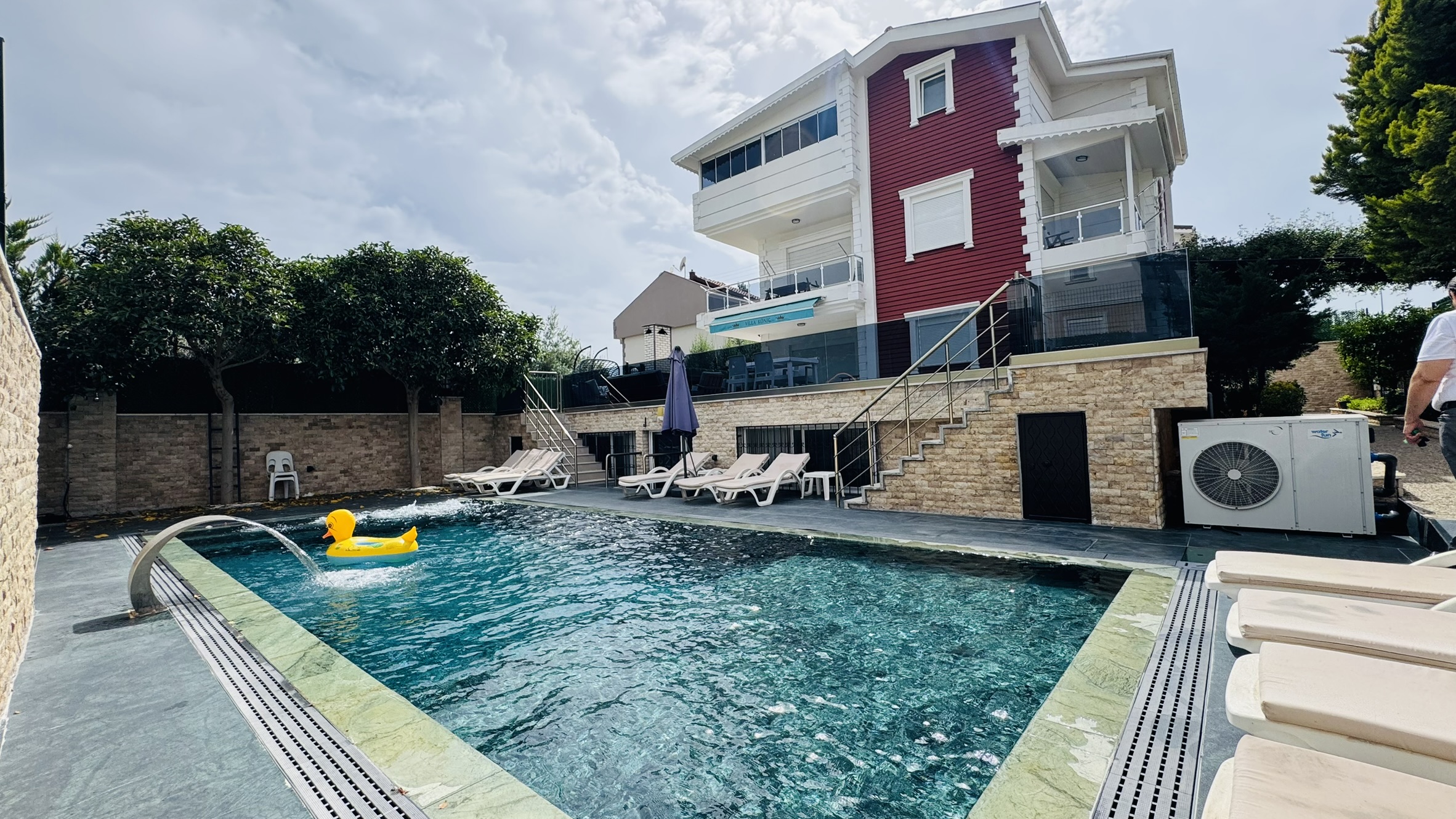 Villamızda sadece misafirlerimizin kullanımına özel olarak tasarlanmış ısıtmalı kış havuzu ve soğutmalı yaz havuzu bulunmaktadır. Bu sayede dört mevsim boyunca tatilin keyfini çıkarabilir, hem yazın serinliğini hem de kışın sıcaklığını konforla yaşayabilirsiniz. Özellikle muhafazakâr aileler için tasarlanan özel havuz sistemi, dışarıdan görünmeyecek şekilde yapılandırılmıştır ve tam mahremiyet sağlar.