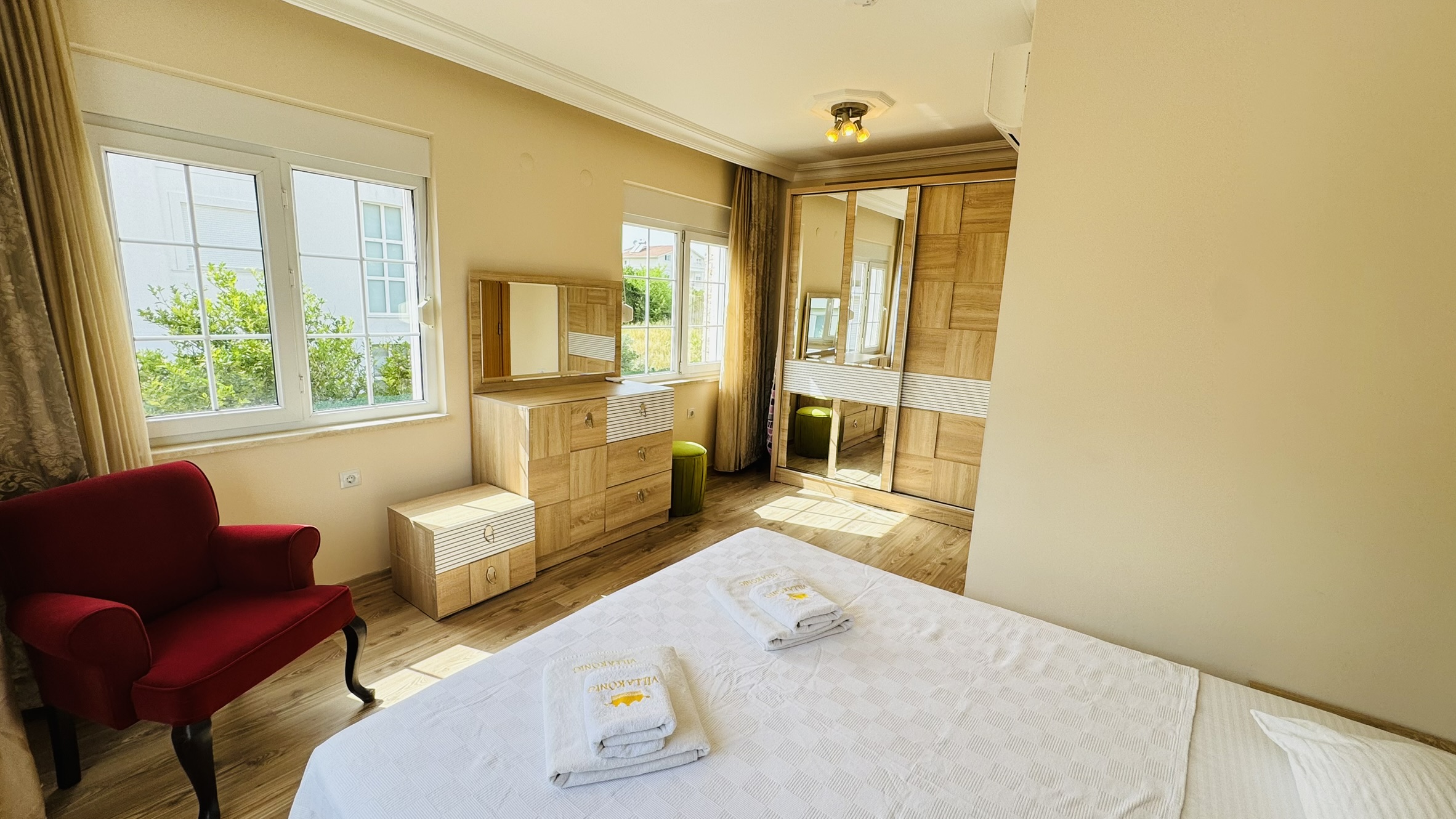 Villamız, Belek’in huzurlu atmosferinde doğayla iç içe bir tatil sunarken, modern olanaklarla donatılmış yapısı sayesinde her detayıyla size özel bir yaşam alanı sağlar. Geniş ve ferah mimarisi, şık iç dekorasyonu, tam donanımlı mutfağı ve yüksek kaliteli mobilyaları ile evinizin konforunu tatilde de yaşarsınız.